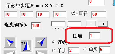 在電源中設置每層(左工位5層,右工位5層共10層)的激光功率,PWM頻率和占空比,加工速度等參數,在示教編程中,把需要不同功率加工的線段設置為不同的層。如下圖: