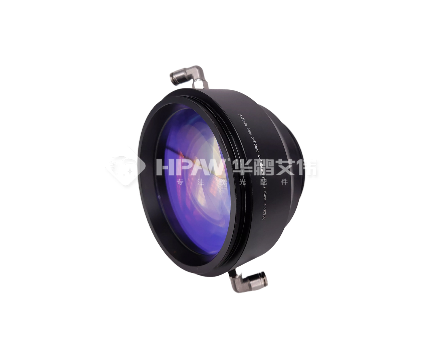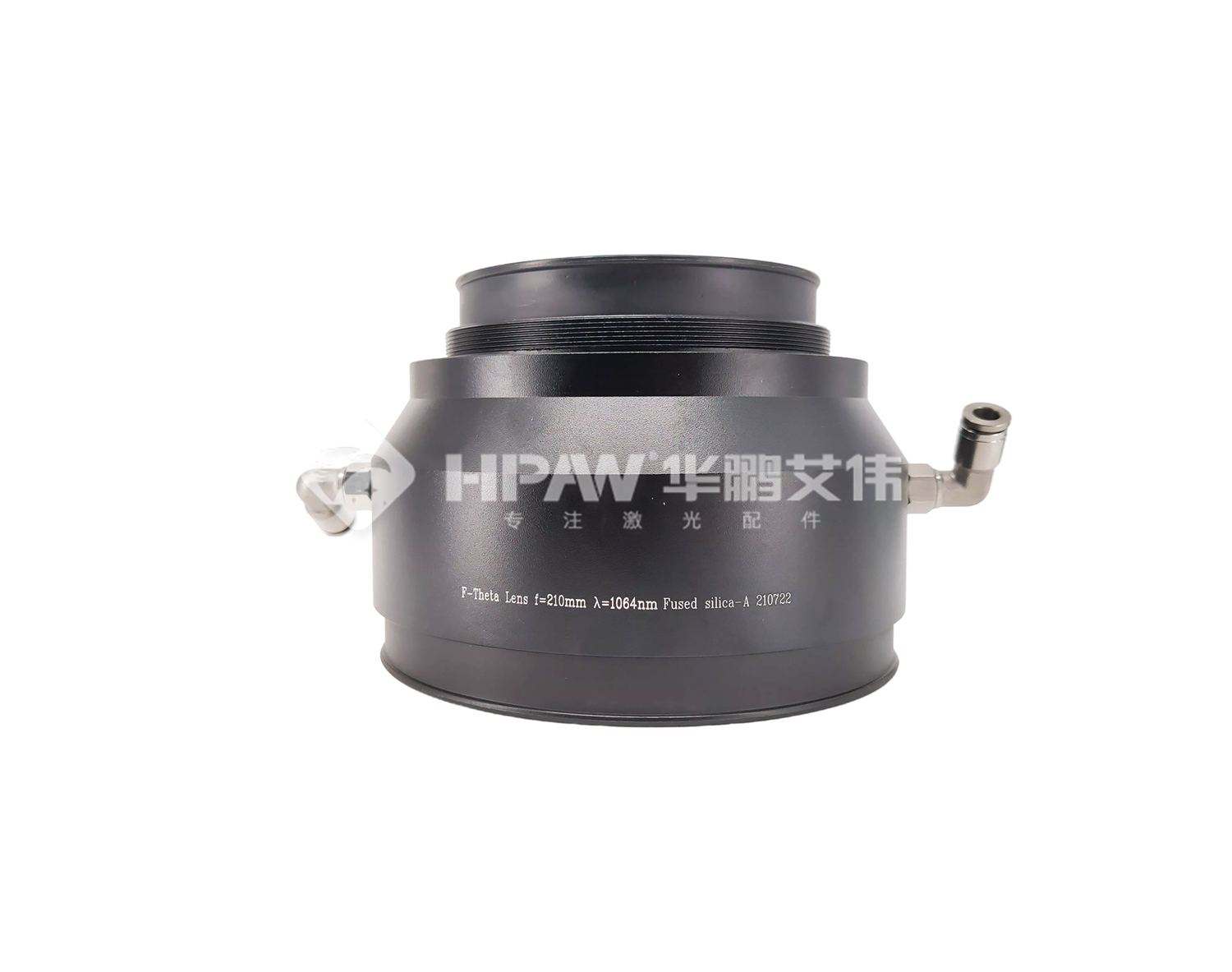 高功率激光場鏡是應用于高功率激光焊接、激光切割等領域的高精度掃描場鏡,其特點是:可承受3KW到6KW的高能量連續激光,全視場內滿足平場要求,像質達到衍射極限。高功率F-theta場鏡可減少高功率、短脈沖激光產生的熱偏移現象,用于更高損傷閾值。華鵬艾偉高功率石英焊接場鏡1080nm-30光斑SilicaA分為兩款,另外一款為高功率石英焊接場鏡1080nm-30光斑SilicaA,為不帶水冷。
