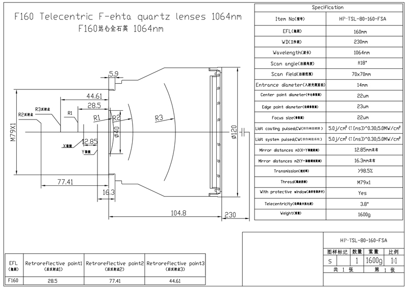 遠心場鏡1064nm包含:F160遠心場鏡1064nm70x70WD230、F160遠心場鏡1064nm100x100WD218、F125遠心場鏡1064nm70x70WD157、F100遠心場鏡1064nm65x65WD112等。……