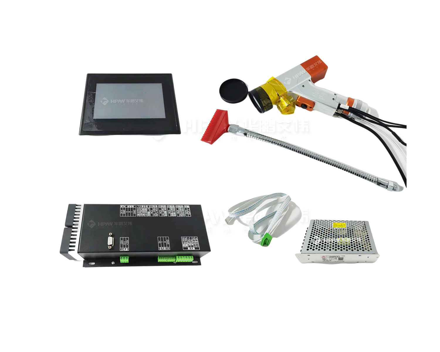 本款QBH手持?jǐn)[動(dòng)清洗頭由光纖手持清洗頭、驅(qū)動(dòng)控制器、觸摸屏、電源及連接線組成,型號(hào)為HPCL100ASC,由深圳市華鵬艾偉提供技術(shù)支持,適用于市面上大部分手持激光焊接。